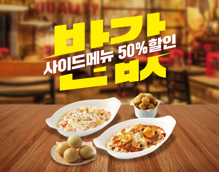 피자헛 사이드메뉴 50% 반값 할인