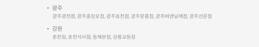 광주광천점, 광주충장로점, 광주효천점, 광주문흥점, 광주비엔날레점, 광주선운점