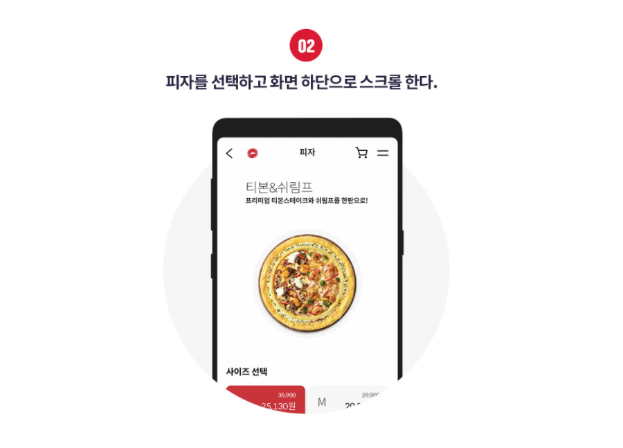 갈릭버터쉬림프 피자의 경우 L사이즈는 25130원, M사이즈는 20930원입니다. 직화불고기 피자의 경우 L사이즈는 25130원, M사이즈는 20930원입니다. 토핑킹 피자의 경우 L사이즈는 25130원, M사이즈는 20930원입니다. 더블치즈 티본스테이크 피자는 L사이즈 25130원, M사이즈 20930원입니다.
