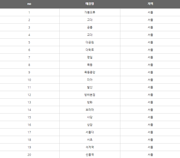 서울: 개봉오류점, 고대점, 공릉점, 교대점, 대공원점, 대학로점, 명일점, 목동점, 목동중앙점, 미아점, 발산점, 방배본점, 방화점, 보라매점, 사당점, 상암점, 서울대점, 서초점, 석계역점, 선릉역점, 성수점, 송파점, 수유점, 신림점, 아차산점, 압구정점, 양재점, 여의도점, 역삼점, 이대점, 전농점, 정릉점, 중앙대점, 창동점, 청계광장점, 청담점