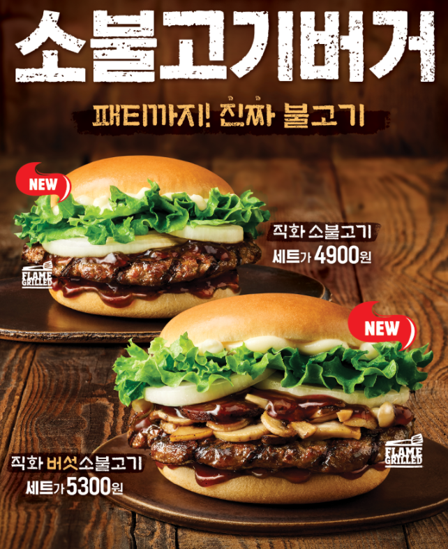 행사제품: 직화 소불고기버거, 직화 버섯소불고기버거